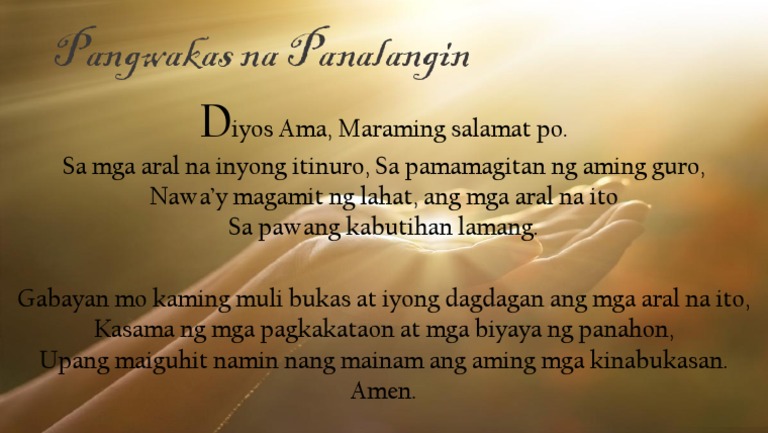 Panalangin ko. Naaalala ko ring sinabi ko sa panalangin na Salamat po sa pag-aaruga Ninyo sa Amin sa pag-aalala Ninyo sa amin at sa paraang inihahanda Ninyo para malagpasan namin ang pagsubok na ito anuman po ito Kalaunan ang aking mga panalangin ay hindi lamang panalangin ng pasasalamat hindi lamang panalangin ng pagpapakumbaba kundi maging ng. Panalangin sa pagsisimula ng klasepanalangin dasal prayer.